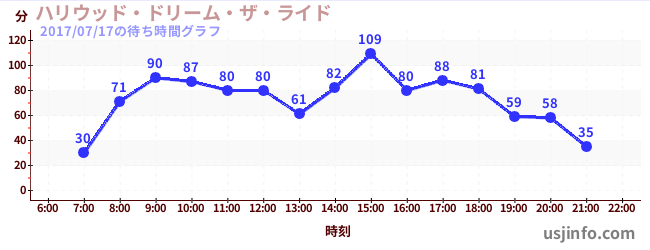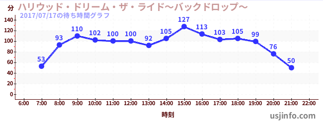 • ハリウッド・ドリーム・ザ・ライド〜バックドロップ〜$B$N(B2017年07月17日の待ち時間