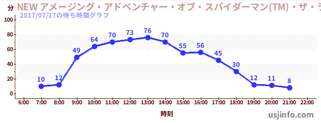 • NEW アメージング・アドベンチャー・オブ・スパイダーマン(TM)・ザ・ライド 4K3D$B$N(B2017年07月17日の待ち時間