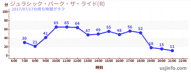 • ジュラシック・パーク・ザ・ライド(R)$B$N(B2017年07月17日の待ち時間