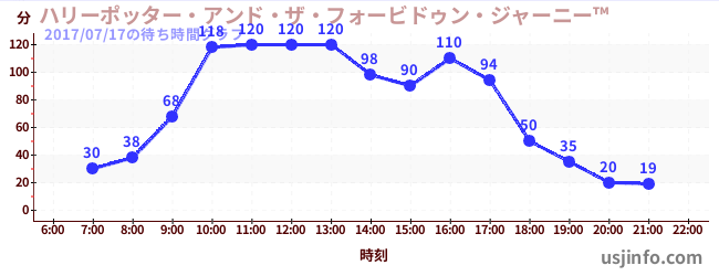 • ハリーポッター・アンド・ザ・フォービドゥン・ジャーニー™$B$N(B2017年07月17日の待ち時間