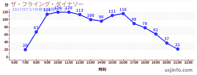 • ザ・フライング・ダイナソー$B$N(B2017年07月17日の待ち時間