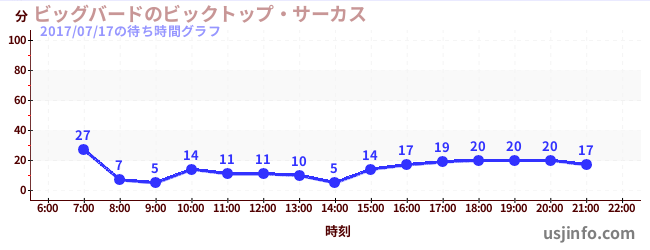 • ビッグバードのビックトップ・サーカス$B$N(B2017年07月17日の待ち時間