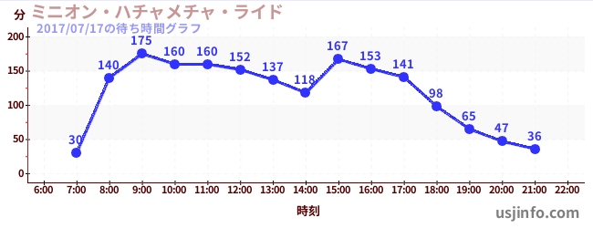 • ミニオン・ハチャメチャ・ライド$B$N(B2017年07月17日の待ち時間