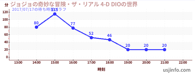 • ジョジョの奇妙な冒険・ザ・リアル 4-D DIOの世界$B$N(B2017年07月17日の待ち時間