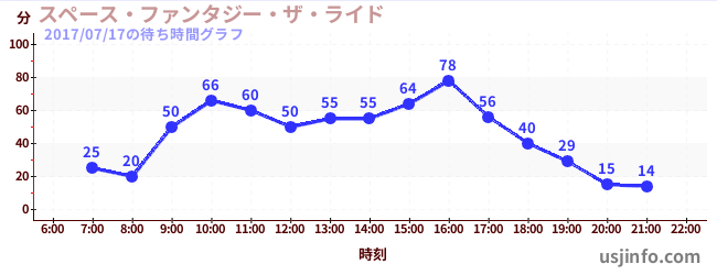 • スペース・ファンタジー・ザ・ライド$B$N(B2017年07月17日の待ち時間