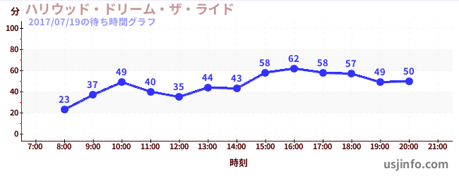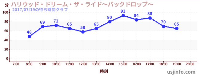 • ハリウッド・ドリーム・ザ・ライド〜バックドロップ〜$B$N(B2017年07月19日の待ち時間