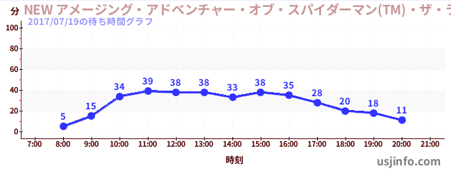 • NEW アメージング・アドベンチャー・オブ・スパイダーマン(TM)・ザ・ライド 4K3D$B$N(B2017年07月19日の待ち時間