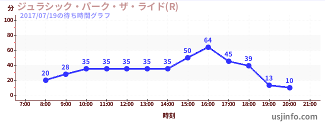 • ジュラシック・パーク・ザ・ライド(R)$B$N(B2017年07月19日の待ち時間