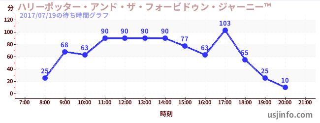 • ハリーポッター・アンド・ザ・フォービドゥン・ジャーニー™$B$N(B2017年07月19日の待ち時間