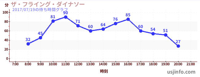 • ザ・フライング・ダイナソー$B$N(B2017年07月19日の待ち時間