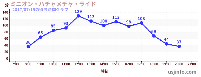 • ミニオン・ハチャメチャ・ライド$B$N(B2017年07月19日の待ち時間