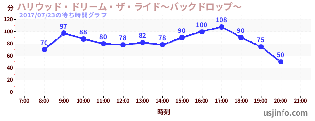 • ハリウッド・ドリーム・ザ・ライド〜バックドロップ〜$B$N(B2017年07月23日の待ち時間