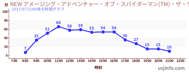 • NEW アメージング・アドベンチャー・オブ・スパイダーマン(TM)・ザ・ライド 4K3D$B$N(B2017年07月23日の待ち時間