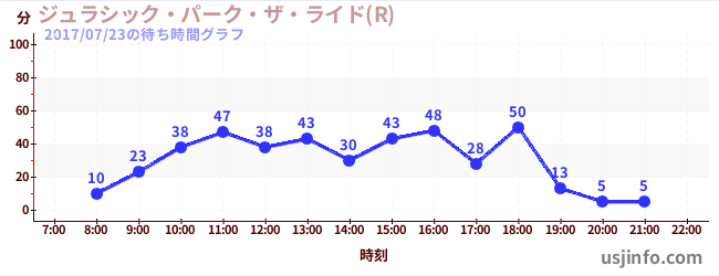 • ジュラシック・パーク・ザ・ライド(R)$B$N(B2017年07月23日の待ち時間