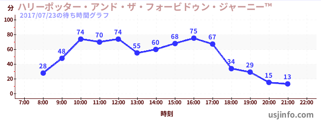 • ハリーポッター・アンド・ザ・フォービドゥン・ジャーニー™$B$N(B2017年07月23日の待ち時間