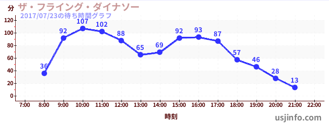 • ザ・フライング・ダイナソー$B$N(B2017年07月23日の待ち時間