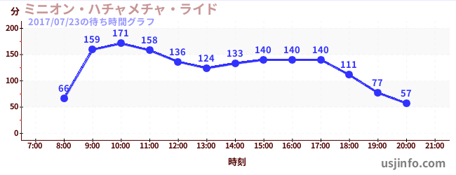• ミニオン・ハチャメチャ・ライド$B$N(B2017年07月23日の待ち時間
