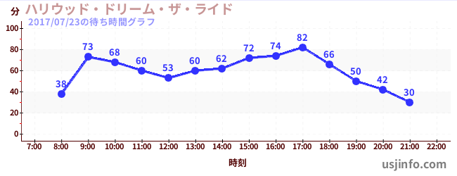 • ハリウッド・ドリーム・ザ・ライド$B$N(B2017年07月23日の待ち時間