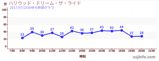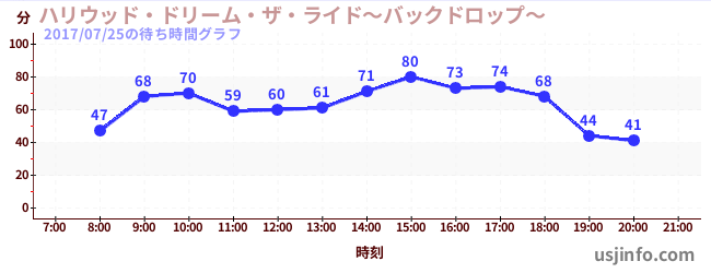 • ハリウッド・ドリーム・ザ・ライド〜バックドロップ〜$B$N(B2017年07月25日の待ち時間