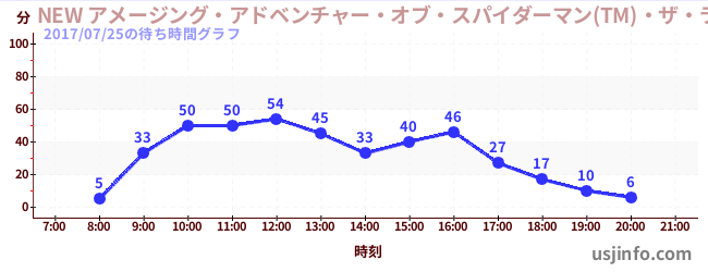 • NEW アメージング・アドベンチャー・オブ・スパイダーマン(TM)・ザ・ライド 4K3D$B$N(B2017年07月25日の待ち時間