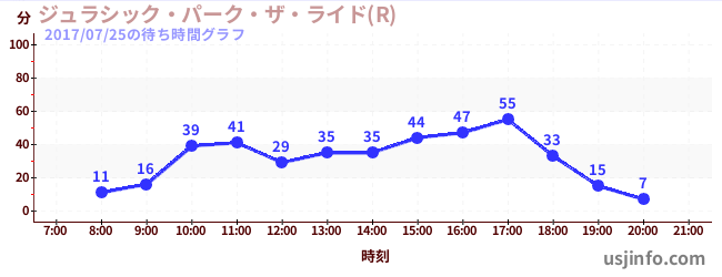 • ジュラシック・パーク・ザ・ライド(R)$B$N(B2017年07月25日の待ち時間