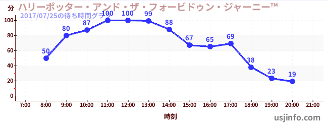 • ハリーポッター・アンド・ザ・フォービドゥン・ジャーニー™$B$N(B2017年07月25日の待ち時間