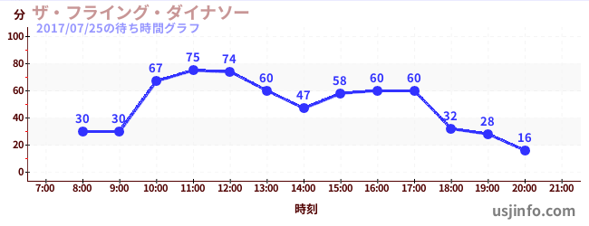 • ザ・フライング・ダイナソー$B$N(B2017年07月25日の待ち時間