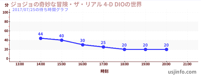 • ジョジョの奇妙な冒険・ザ・リアル 4-D DIOの世界$B$N(B2017年07月25日の待ち時間