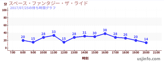 • スペース・ファンタジー・ザ・ライド$B$N(B2017年07月25日の待ち時間