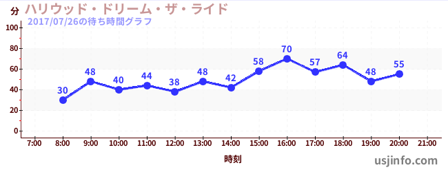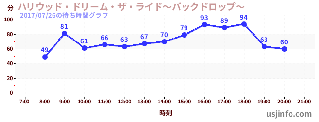 • ハリウッド・ドリーム・ザ・ライド〜バックドロップ〜$B$N(B2017年07月26日の待ち時間