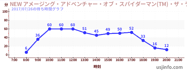 • NEW アメージング・アドベンチャー・オブ・スパイダーマン(TM)・ザ・ライド 4K3D$B$N(B2017年07月26日の待ち時間