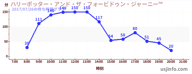 • ハリーポッター・アンド・ザ・フォービドゥン・ジャーニー™$B$N(B2017年07月26日の待ち時間