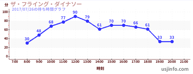 • ザ・フライング・ダイナソー$B$N(B2017年07月26日の待ち時間
