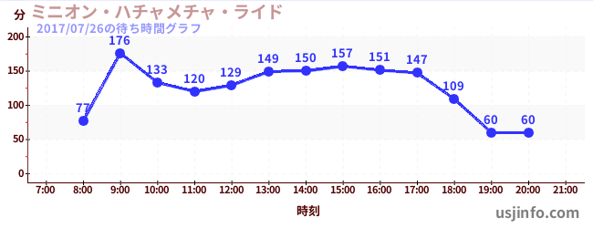 • ミニオン・ハチャメチャ・ライド$B$N(B2017年07月26日の待ち時間