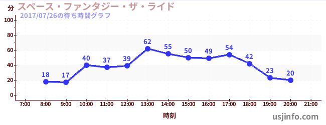 • スペース・ファンタジー・ザ・ライド$B$N(B2017年07月26日の待ち時間