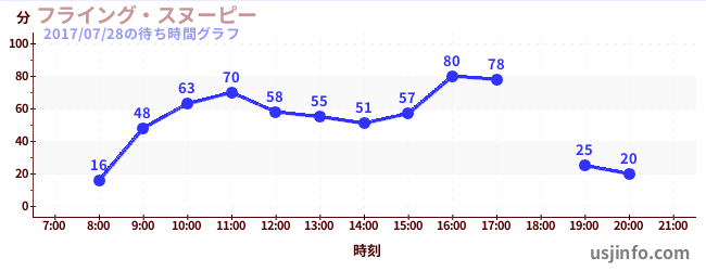 • フライング・スヌーピー$B$N(B2017年07月28日の待ち時間