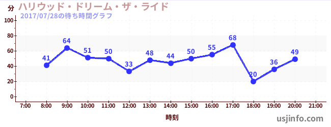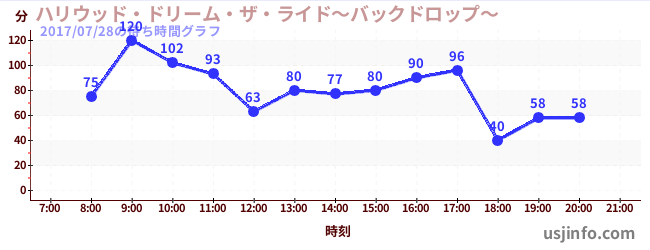 • ハリウッド・ドリーム・ザ・ライド〜バックドロップ〜$B$N(B2017年07月28日の待ち時間