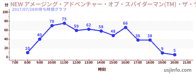 • NEW アメージング・アドベンチャー・オブ・スパイダーマン(TM)・ザ・ライド 4K3D$B$N(B2017年07月28日の待ち時間