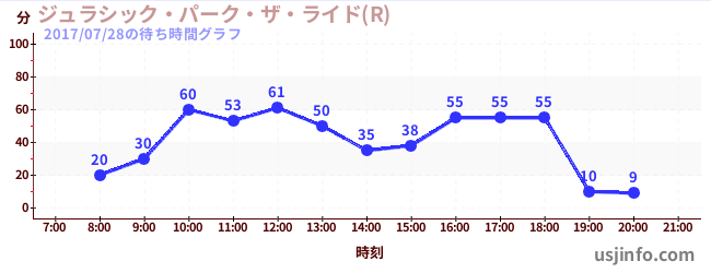 • ジュラシック・パーク・ザ・ライド(R)$B$N(B2017年07月28日の待ち時間