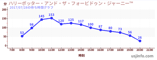 • ハリーポッター・アンド・ザ・フォービドゥン・ジャーニー™$B$N(B2017年07月28日の待ち時間