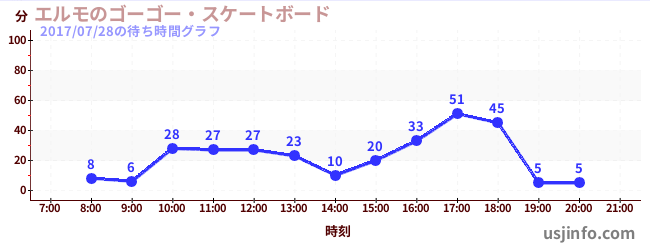 • エルモのゴーゴー・スケートボード$B$N(B2017年07月28日の待ち時間