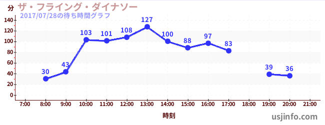 • ザ・フライング・ダイナソー$B$N(B2017年07月28日の待ち時間