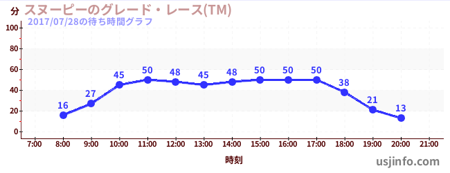 • スヌーピーのグレード・レース(TM)$B$N(B2017年07月28日の待ち時間