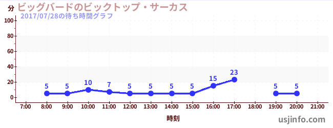 • ビッグバードのビックトップ・サーカス$B$N(B2017年07月28日の待ち時間