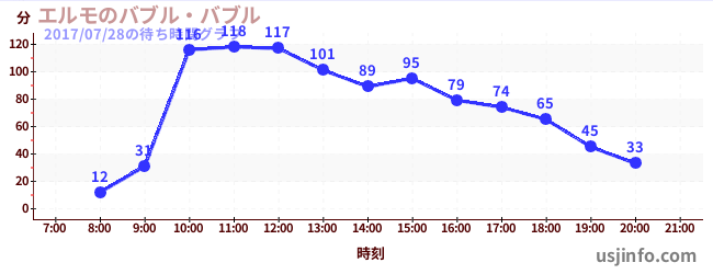 • エルモのバブル・バブル$B$N(B2017年07月28日の待ち時間