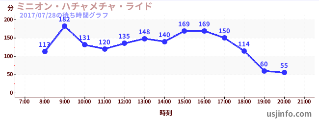 • ミニオン・ハチャメチャ・ライド$B$N(B2017年07月28日の待ち時間