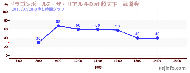 • ドラゴンボールZ・ザ・リアル 4-D at 超天下一武道会$B$N(B2017年07月28日の待ち時間