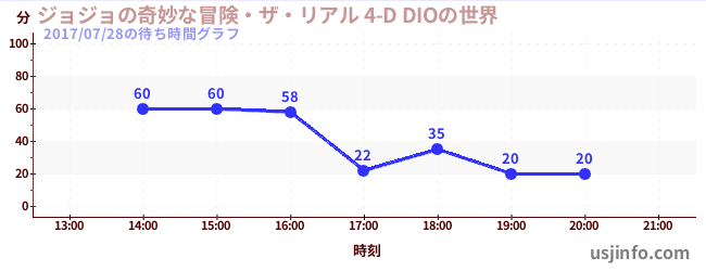 • ジョジョの奇妙な冒険・ザ・リアル 4-D DIOの世界$B$N(B2017年07月28日の待ち時間