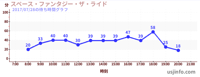 • スペース・ファンタジー・ザ・ライド$B$N(B2017年07月28日の待ち時間