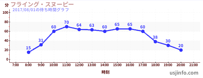 • フライング・スヌーピー$B$N(B2017年08月01日の待ち時間